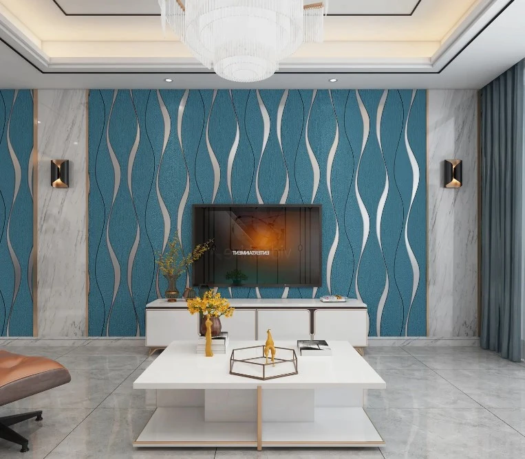 - Durable et résistant à l'eau : Notre papier peint intissé minimaliste moderne à motif de vagues d'eau en 3D est conçu pour résister à divers environnements, garantissant un aspect durable et élégant dans n'importe quelle pièce, même dans les zones sujettes à l'humidité, comme l'a demandé notre client dans le salon.