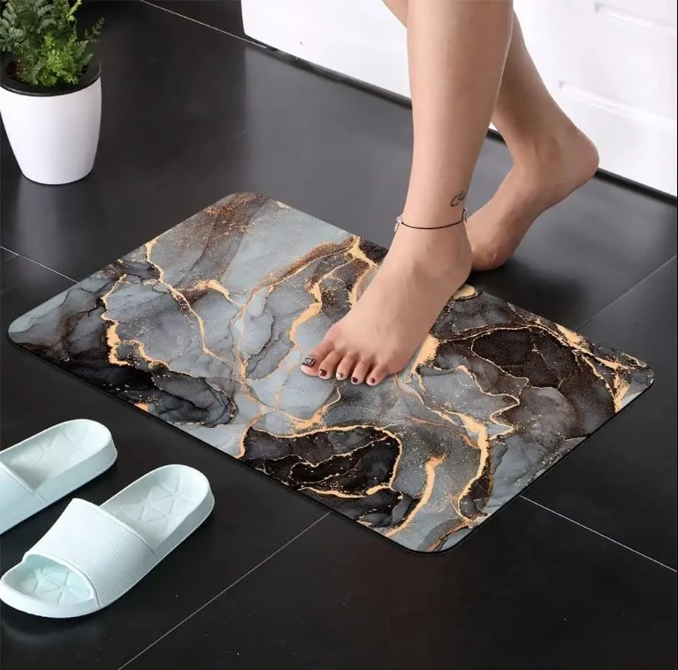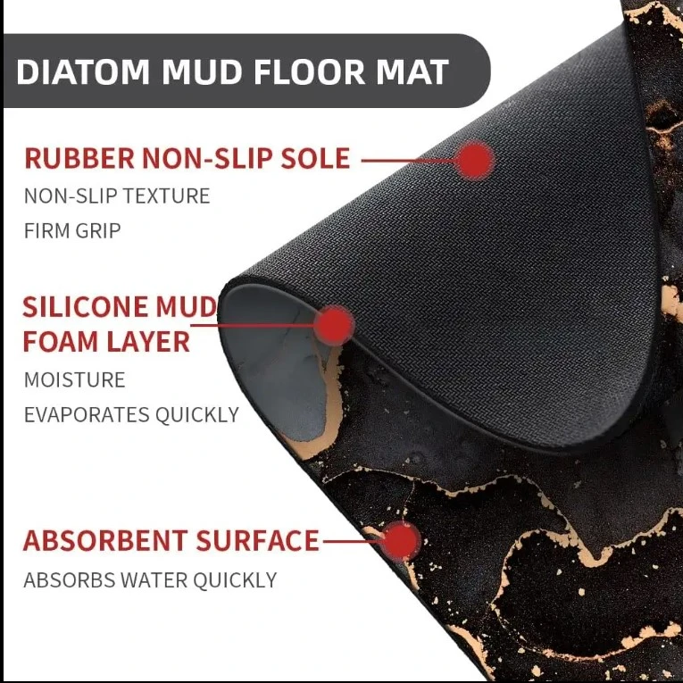 Design Style Modern Other attributesPlace of Origin Zhejiang, China Technics MACHINE MADE Pattern Solid Material Diatom mud/Natural Rubber Feature Sustainable, Stocked Brand Name B&F Model Number BF-088 Product Name Super Absorbent Bathroom Mat Thickness 3-3.8CM Backing material Natural Rubber 0/5